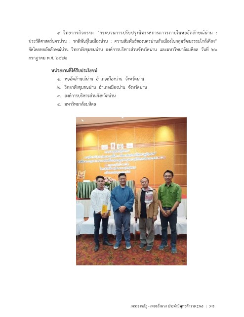 ๔. วิทยากรกิจกรรม “กระบวนการปรบปรุงนิทรรศการถาวรภายในหออัตลกษณ์นาน :