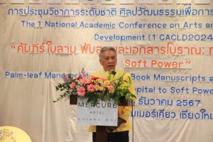 เมื่อวันที่ 2 ธันวาคม 2567 สำนักศิลปะและวัฒนธรรม มหาวิทยาลัยราชภัฏเชียงใหม่ จัดการประชุมวิชาการระดับชาติศิลปวัฒนธรรมเพื่อการพัฒนาท้องถิ่น ครั้งที่ 1 The 1st National Academic Conference on Arts and Culture for Local Development (1st CACLD 2024) ในหัวข้อ “คัมภีร์ใบลาน พับสา และเอกสารโบราณ : ทุนทางวัฒนธรรมสู่ Soft Power” ณ โรงแรมเมอร์เคียว จังหวัดเชียงใหม่ ตามนโยบายด้านศิลปวัฒนธรรมของมหาวิทยาลัยราชภัฏเชียงใหม่ โครงการยุทธศาสตร์มหาวิทยาลัยราชภัฏเพื่อการพัฒนาท้องถิ่น ในการส่งเสริมและผลักดันซอฟท์พาวเวอร์ (Soft Power) ของท้องถิ่น ร่วมกับภาคีเครือข่ายด้านศิลปะและวัฒนธรรมทั้งภาครัฐ เอกชน และชุมชนในพื้นที่จังหวัดเชียงใหม่ เพื่อเป็นเวทีแลกเปลี่ยนเรียนรู้ การนำเสนอผลงานวิชาการและงานวิจัยเกี่ยวกับคัมภีร์ใบลาน พับสา เอกสารโบราณและงานศิลปวัฒนธรรมที่เกี่ยวข้อง ตลอดจนบูรณาการการใช้ประโยชน์ การเผยแพร่ และการพัฒนาต่อยอดทางด้านการศึกษา การวิจัย และการพัฒนาท้องถิ่น