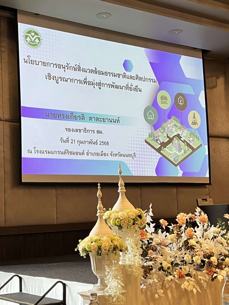 เมื่อวันที่ 21 – 22 กุมภาพันธ์ 2568 อาจารย์สิริพร คืนมาเมือง รองผู้อำนวยการสำนักศิลปะและวัฒนธรรม และรองหัวหน้าหน่วยอนุรักษ์สิ่งแวดล้อมธรรมชาติและศิลปกรรมท้องถิ่นจังหวัดเชียงใหม่ และนางสาวปนัดดา โตคำนุช นักวิชาการวัฒนธรรม เข้าร่วมการประชุมประจำปีภาคีอนุรักษ์สิ่งแวดล้อมธรรมชาติและศิลปกรรมกลุ่มจังหวัด ประจำปี พ.ศ. 2568 ซึ่งจัดขึ้นระหว่างวันที่ 21 – 22 กุมภาพันธ์ 2568 ณ ห้องประชุม Tipawan Ballroom โรงแรมแกรนด์ริชมอนด์ อำเภอเมือง จังหวัดนนทบุรี โดยมี นายเกียรติศักดิ์ ตรงศิริ ผู้ว่าราชการจังหวัดนนทบุรีเป็นประธานในงาน พร้อมมอบโล่ผู้ทำคุณประโยชน์แก่หน่วยอนุรักษ์สิ่งแวดล้อมธรรมชาติและศิลปกรรมท้องถิ่น ประจำปี พ.ศ. 2567 ซึ่งอาจารย์สิริพร คืนมาเมือง ร่วมรับมอบรางวัลดังกล่าวด้วย