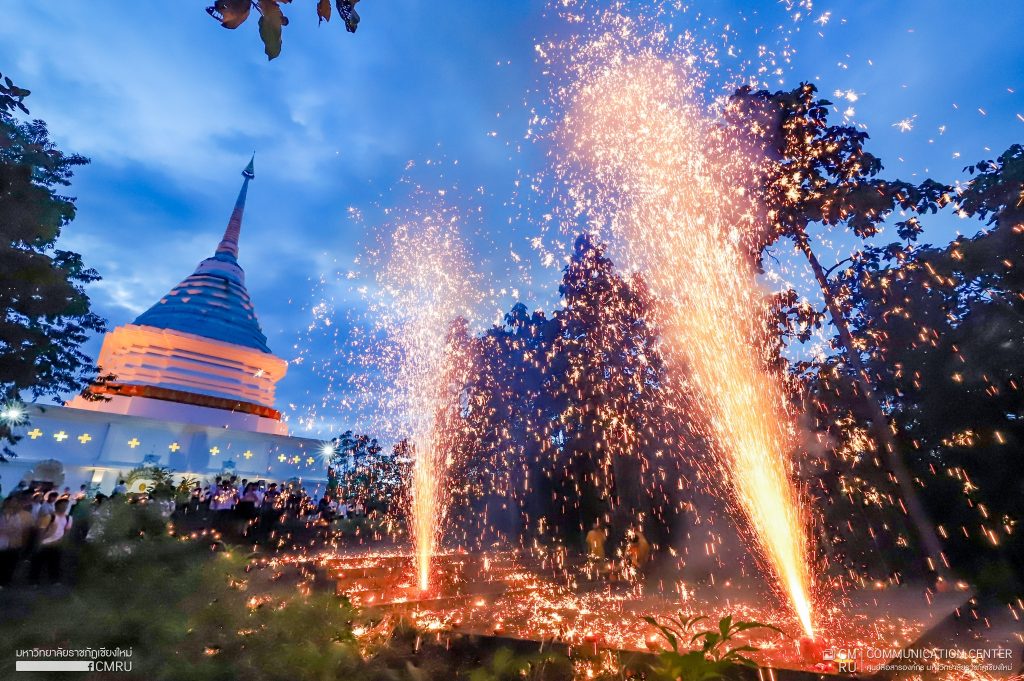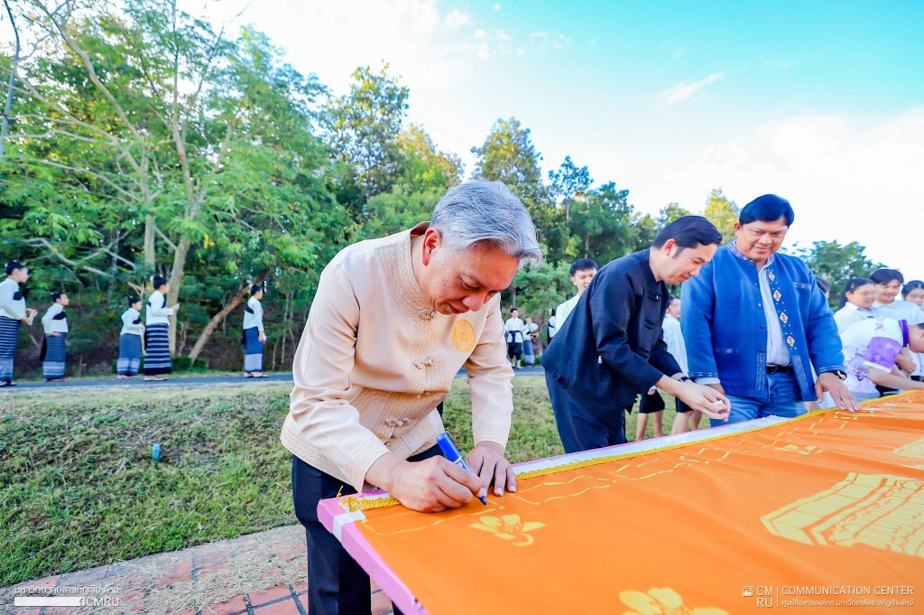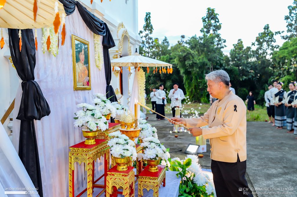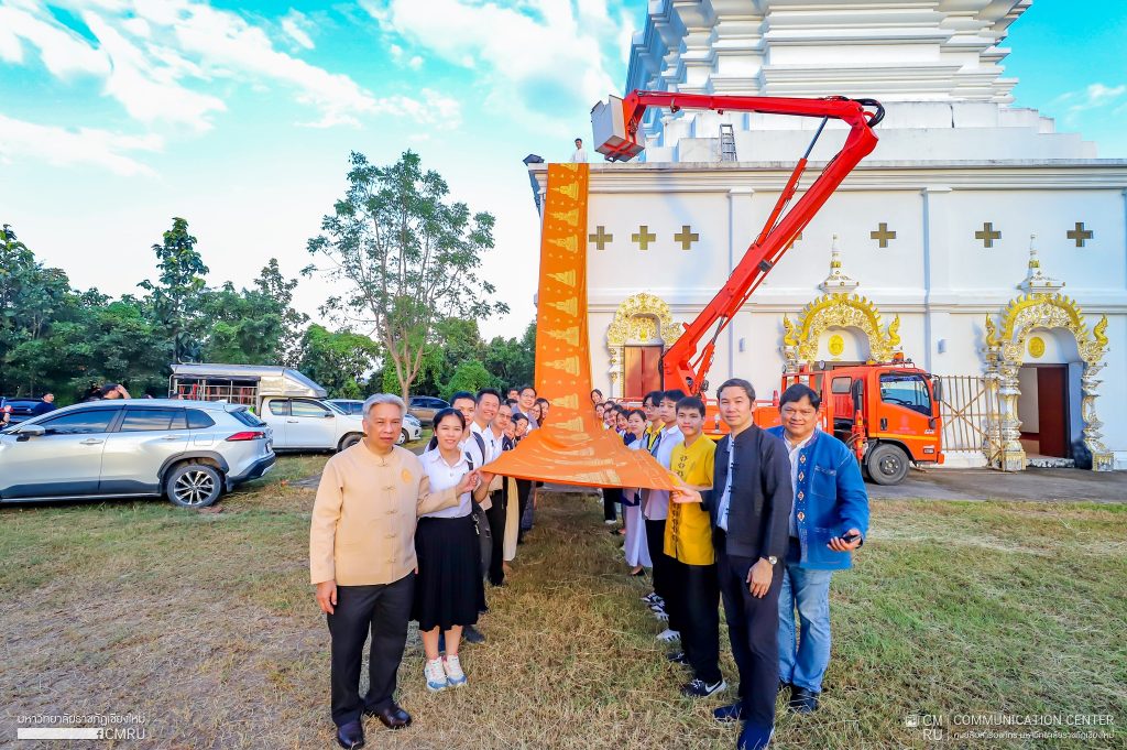 เมื่อวันที่ 31 ตุลาคม 2568 สำนักศิลปะและวัฒนธรรม จัดโครงการ “สืบฮีตสานฮอยยี่เป็งล้านนา ไหว้สาองค์พระมหาเจดีย์ ประจำปี 2568” โดยมีกิจกรรม “ห่มผ้าองค์พระมหาเจดีย์ เพื่อถวายเป็นพระราชกุศลแด่ สมเด็จพระนางเจ้าสิริกิติ์ พระบรมราชินีนาถ พระบรมราชชนนีพันปีหลวง” ณ องค์พระมหาเจดีย์ มหาวิทยาลัยราชภัฏเชียงใหม่ ศูนย์แม่ริม อำเภอแม่ริม จังหวัดเชียงใหม่ โดยได้รับเกียรติจาก รองศาสตราจารย์ ดร.ชาตรี มณีโกศล อธิการบดีมหาวิทยาลัยราชภัฏเชียงใหม่ เป็นประธานในพิธีเปิด พร้อมด้วยผู้บริหาร คณาจารย์ บุคลากร และนักศึกษา เข้าร่วมกิจกรรม และฟังบรรยายธรรม หัวข้อ “คุณธรรม จริยธรรม เพื่อพัฒนาคุณภาพชีวิต และอานิสงส์จุดผางประทีป ถวายโคมและห่มผ้าองค์พระมหาเจดีย์” โดยพระครูสิริปริยัตยานุศาสก์, ดร. รองเจ้าคณะอำเภอแม่แจ่ม เจ้าอาวาสวัดพันแหวน อำเภอเมือง จังหวัดเชียงใหม่