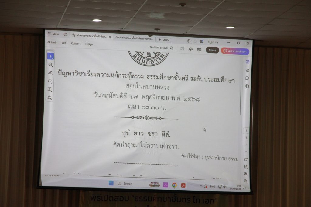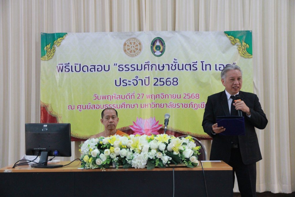 เมื่อวันที่ 27 พฤศจิกายน 2568 รองศาสตราจารย์ ดร.ชาตรี มณีโกศล อธิการบดีมหาวิทยาลัยราชภัฏเชียงใหม่ เป็นประธานในพิธีเปิดสนามสอบธรรมศึกษาชั้นตรี โท เอก ประจำปี 2568 โดยได้รับเมตตาจาก พระครูธีรสุตพจน์ ดร. ผู้ช่วยอธิการบดีมหาวิทยาลัยมหาจุฬาลงกรณราชวิทยาลัย วิทยาเขตเชียงใหม่ เจ้าอาวาสวัดผาลาด(สกิทาคามี) เป็นประธานสนามสอบประจำมหาวิทยาลัยราชภัฏเชียงใหม่ ณ ห้องประชุมเอื้องสามปอยหลวง ชั้น 15 อาคารราชภัฏเฉลิมพระเกียรติ (อาคาร 27) พื้นที่เวียงบัว มหาวิทยาลัยราชภัฏเชียงใหม่ซึ่งมีผู้เข้าร่วมโครงการกว่า 280 คน