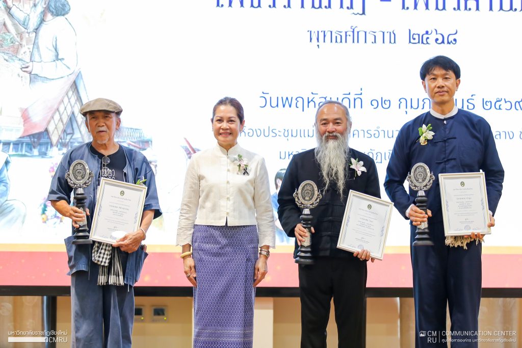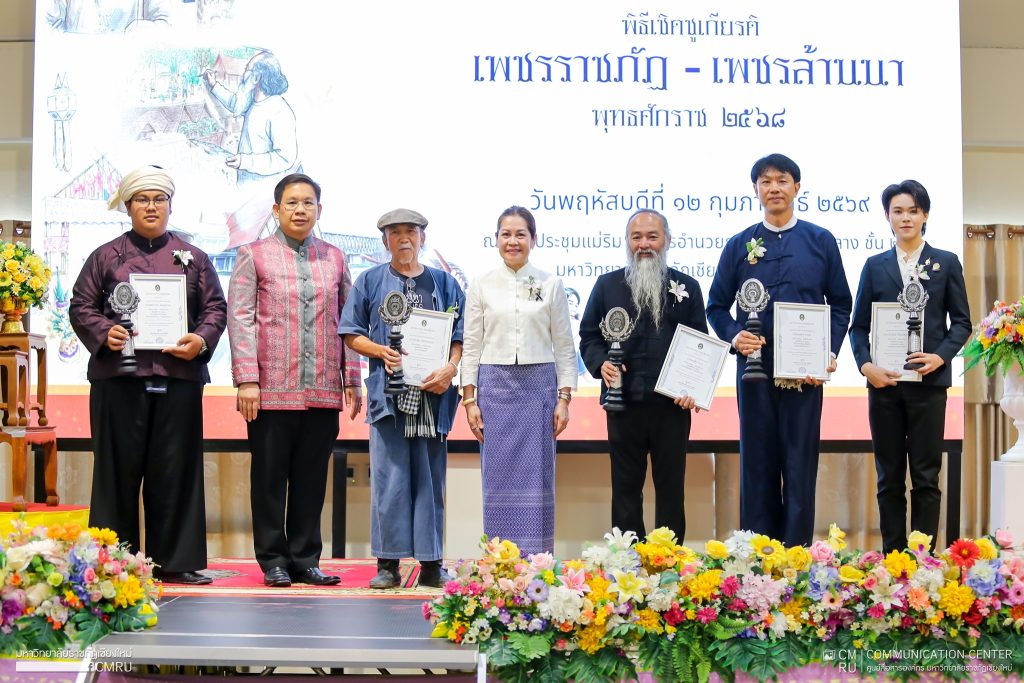 เมื่อวันที่ 12 กุมภาพันธ์ 2569 สำนักศิลปะและวัฒนธรรม มหาวิทยาลัยราชภัฏเชียงใหม่ ได้จัดพิธี เชิดชูเกียรติผู้ได้รับรางวัล “เพชรราชภัฏ – เพชรล้านนา ประจำปีพุทธศักราช 2568” เพื่อยกย่องเชิดชูเกียรติบุคคลผู้สร้างคุณูปการอันทรงคุณค่าแก่ศิลปะและวัฒนธรรม ทั้งในระดับประชาชนทั่วไปและนักศึกษามหาวิทยาลัยราชภัฏเชียงใหม่ โดยได้รับเกียรติจาก ผู้ช่วยศาสตราจารย์พรพิมล วงศ์สุข รองอธิการบดีมหาวิทยาลัยราชภัฏเชียงใหม่ เป็นประธานในพิธี กล่าวแสดงความยินดีและมอบโล่ประกาศเกียรติคุณแก่ ผู้ได้รับรางวัล ณ ห้องประชุมแม่ริม อาคารอำนวยการและบริหารกลาง ชั้น 2 มหาวิทยาลัยราชภัฏเชียงใหม่ ศูนย์แม่ริม อำเภอแม่ริม จังหวัดเชียงใหม่
