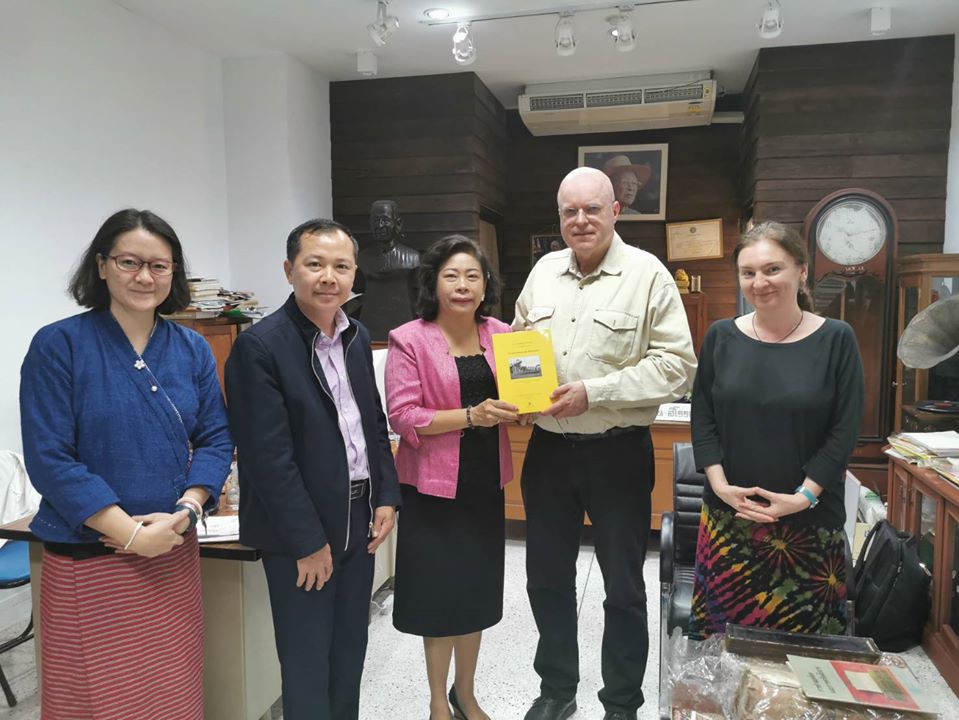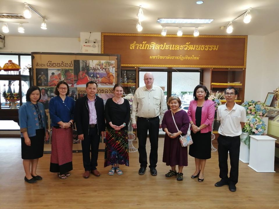 เมื่อวันที่ 27 กุมภาพันธ์ พ.ศ.2563 เวลา 10.00 น. Prof.Dr. Volker Grabowsky นักวิชาการด้านภาษาและวัฒนธรรมไทย (ไทยศึกษา) จาก Universität Hamburg ประเทศสหพันธ์สาธารณรัฐเยอรมนี ได้นำคณะนักวิชาการนานาชาติด้านไทยศึกษาเข้าเยี่ยมชมสำนักศิลปะและวัฒนธรรม มหาวิทยาลัยราชภัฏเชียงใหม่ ซึ่งมีผู้ช่วยศาสตราจารย์สุชานาฏ สิตานุรักษ์ ผู้อำนวยการ และ อาจารย์สิริพร คืนมาเมือง รองผู้อำนวยการ ให้การต้อนรับ ทางคณะของ Prof.Dr. Volker ได้ศึกษาดูงานด้านอักษรโบราณ และการปริวรรตอักษรโบราณ ณ ศูนย์ใบลานศึกษา โดยมี อาจารย์ ดร.ดิเรก อินจันทร์ เป็นผู้นำชม ซึ่งนับเป็นนิมิตรหมายอันดีในการสร้างเครือข่ายความร่วมมือทางวิชาการด้านศิลปวัฒนธรรมในระดับนานาชาติ