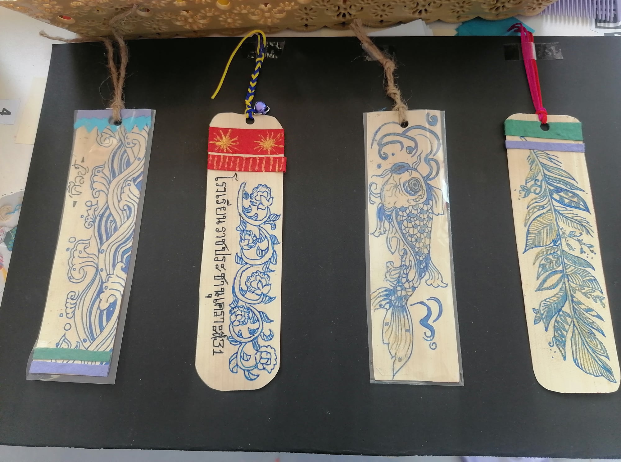 ๗) การทำที่คั่นหนังสือจากใบลาน