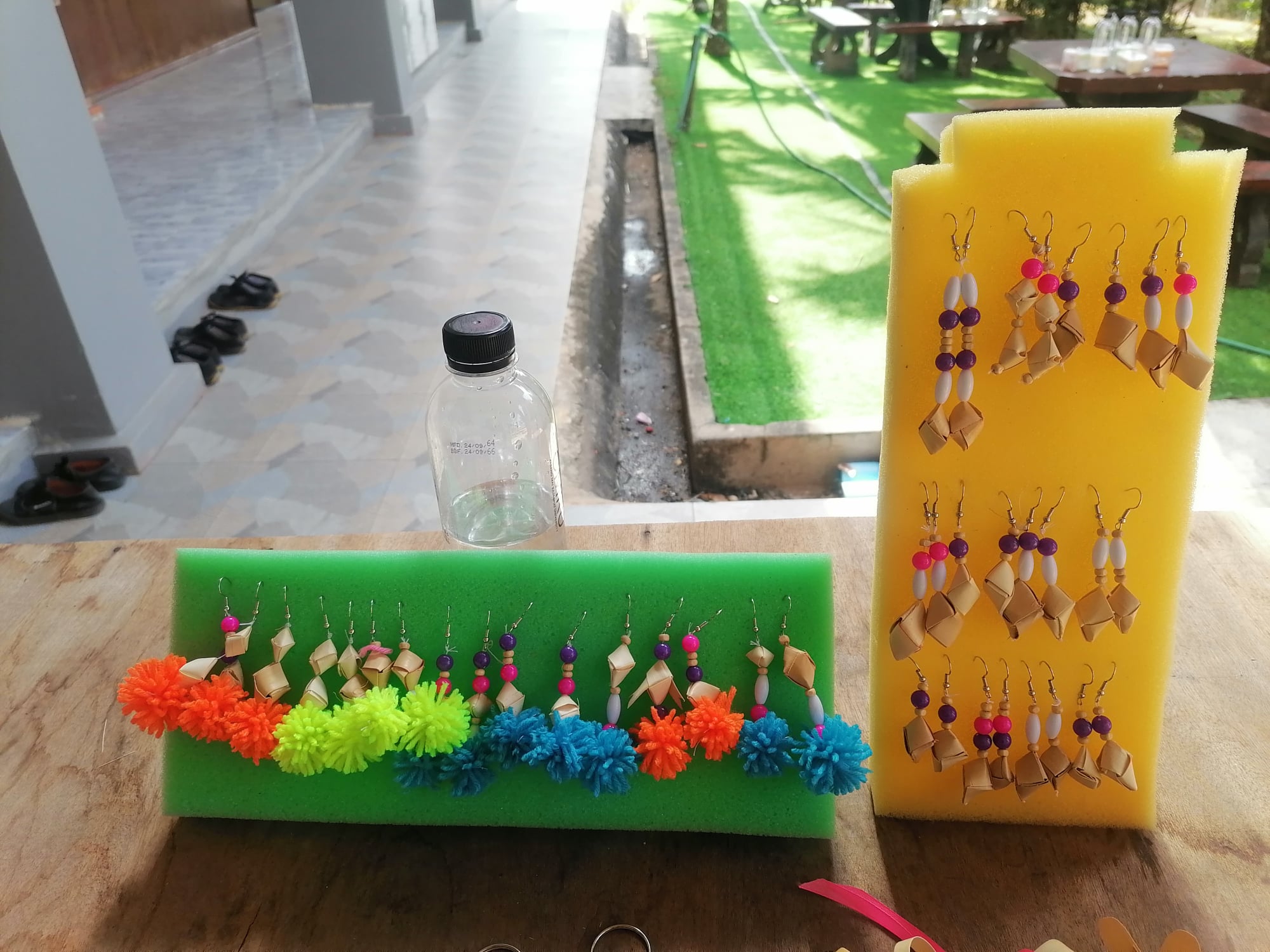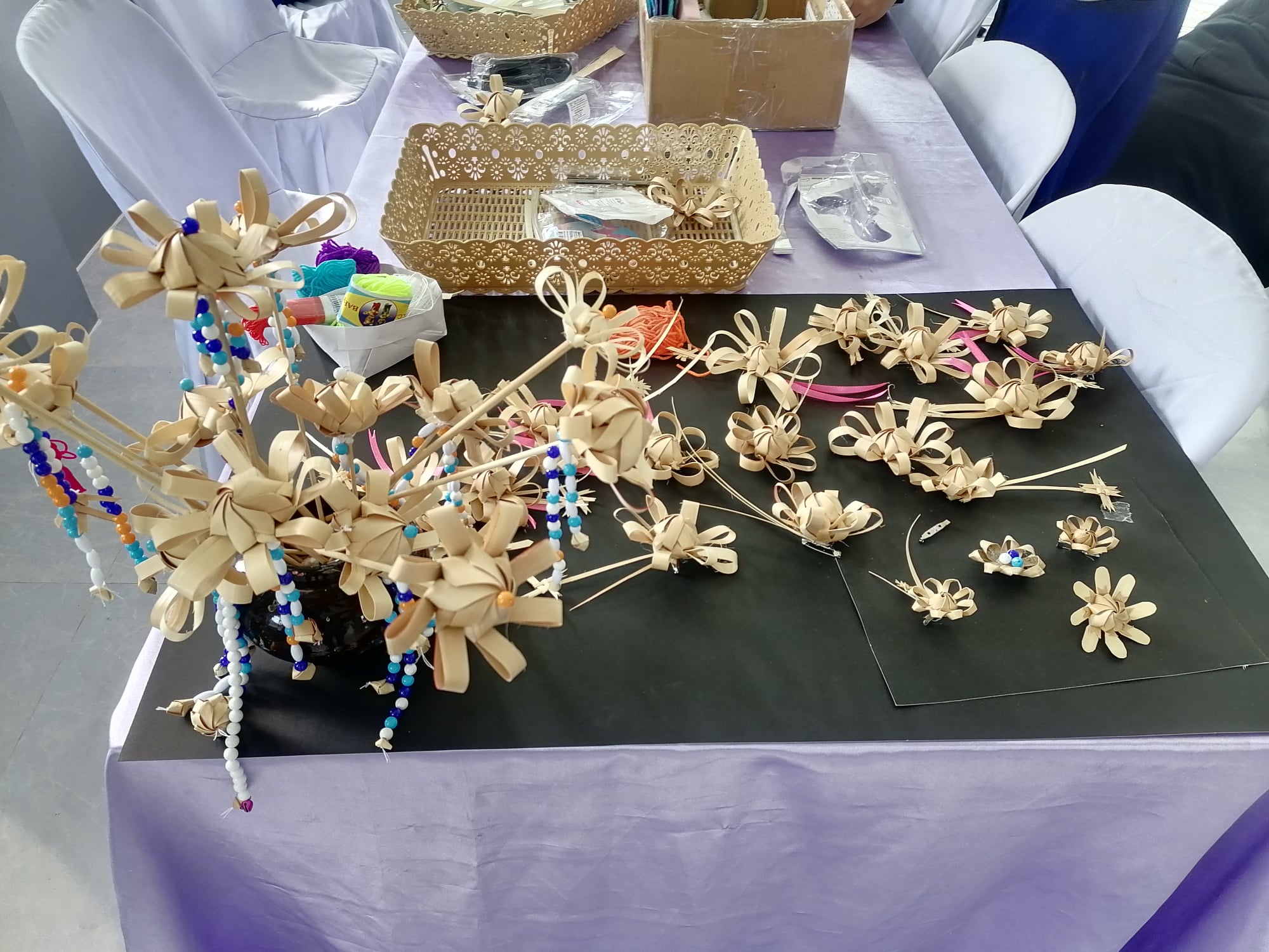 ๕) การทำเครื่องประดับด้วยวัสดุใบลาน ๖) ดอกไม้ประดิษฐ์จากใบลาน