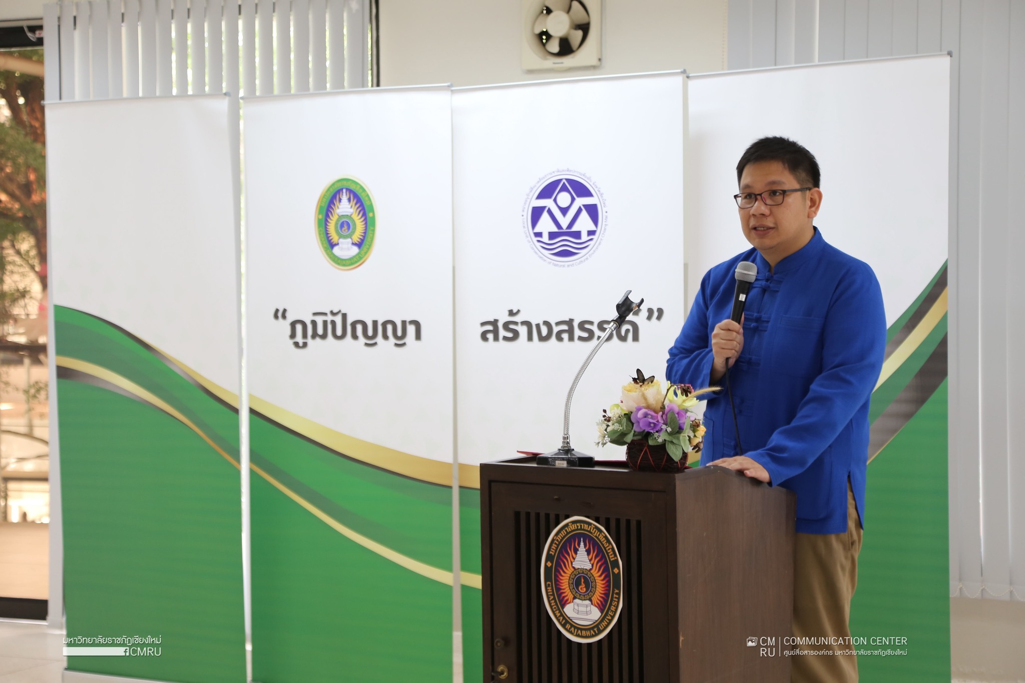 เมื่อวันที 18 กันยายน 2566 ผศ.สุรศักดิ์ นุ่มมีศรี รองอธิการบดี มหาวิทยาลัยราชภัฏเชียงใหม่ เป็นประธานในพิธีเปิดการประกวดการนำเสนอและนิทรรศการ ภูมิปัญญาสร้างสรรค์ ประจำปี 2566 ซึ่งจัดโดยเป็นการบูรณาการความร่วมมือระหว่าง สำนักศิลปะและวัฒนธรรม และคณะมนุษยศาสตร์และสังคมศาสตร์ มหาวิทยาลัยราชภัฏเชียงใหม่ ร่วมกับ หน่วยอนุรักษ์สิ่งแวดล้อมทางธรรมชาติ และศิลปกรรมท้องถิ่นจังหวัดเชียงใหม่ ณ ห้อง ART C 312 อาคารอเนกประสงค์ ด้านภาษา เทคโนโลยีสารสนเทศ และ วิทยบริการ มหาวิทยาลัยราชภัฏเชียงใหม่ ศูนย์แม่ริม โดยมี อ.ดร.ธรรศ ศรีรัตนบัลล์ หัวหน้าหน่วยอนุรักษ์ฯ จังหวัดเชียงใหม่ ผู้อำนวยการสำนักศิลปะและวัฒนธรรม กล่าวรายงาน