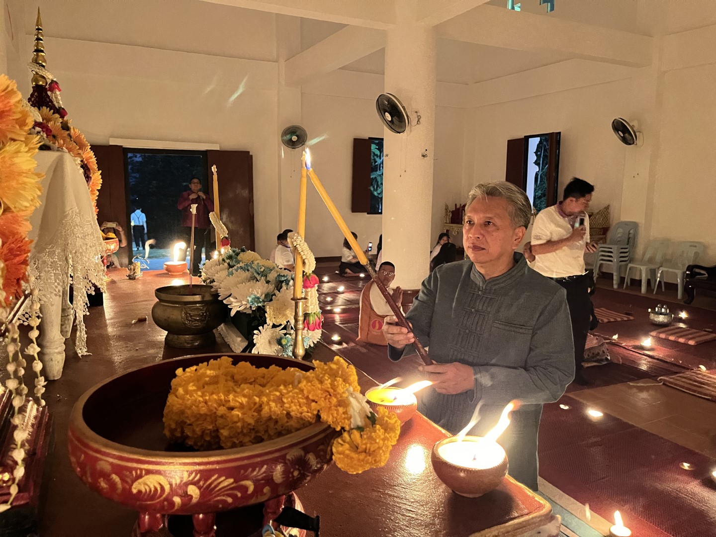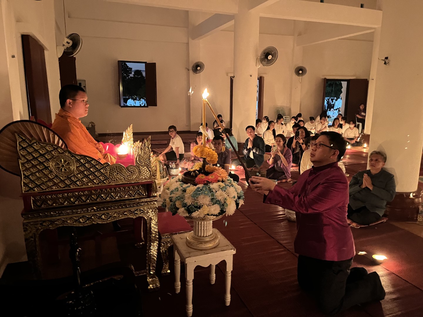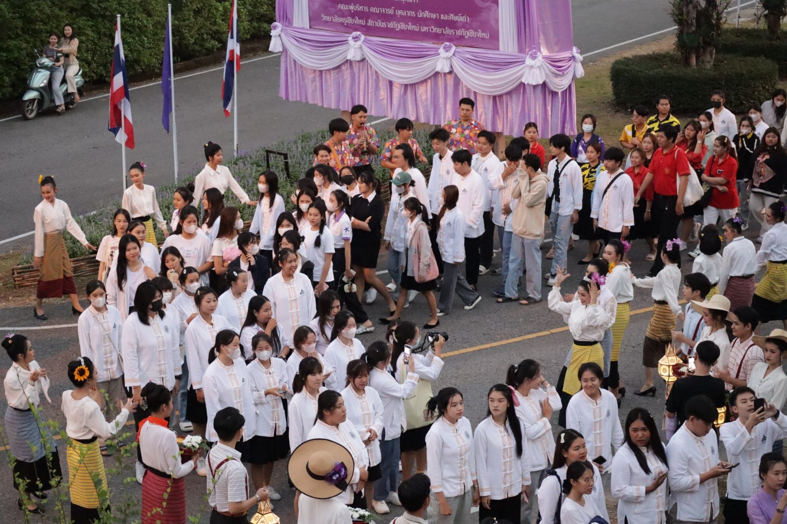 เมื่อวันพุธที่ 22 พฤศจิกายน 2566 เวลา 17.09 น. คณะผู้บริหารมหาวิทยาลัยราชภัฏเชียงใหม่ นำโดย รองศาสตราจารย์ ดร.ชาตรี มณีโกศล อธิการบดี พร้อมด้วยคณะผู้บริหาร คณาจารย์ บุคลากร นักศึกษา และชาวบ้านชุมชนสะลวง-ขี้เหล็ก ได้ร่วมกันดำเนินโครงการ “ราชภัฏเชียงใหม่สืบฮีตสานฮอยยี่เป็งล้านนา ไหว้สาองค์พระมหาเจดีย์” ประจำปี พ.ศ.2566 ณ องค์พระมหาเจดีย์ มหาวิทยาลัยราชภัฏเชียงใหม่ ศูนย์แม่ริม ต.ขี้เหล็ก อ.แม่ริม จ.เชียงใหม่ โดยมีวัตถุประสงค์เพื่อทำนุบำรุงพระพุทธศาสนา และส่งเสริมสืบสานประเพณีอันงดงามของจังหวัดเชียงใหม่ อีกทั้งเป็นการเสริมสร้างความสามัคคีระหว่างสถานศึกษาและชุมชนให้แน่นแฟ้น โดยมีผู้บริหาร คณาจารย์ บุคลากร นักศึกษา จาก ๕ คณะ ๑ วิทยาลัย และชาวบ้านชุมชนสะลวง-ขี้เหล็ก เข้าร่วมกิจกรรมอย่างคับคั่ง